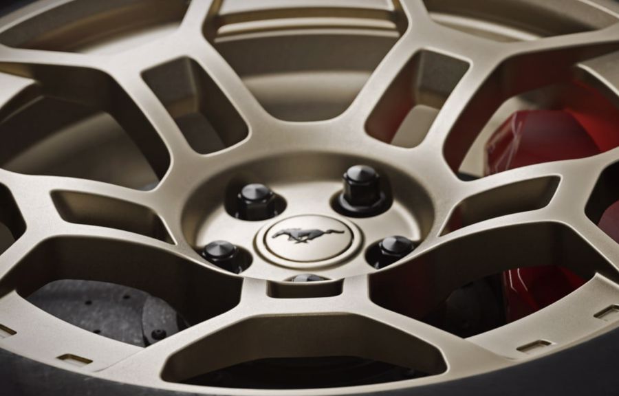 Een ideale combinatie van gewicht en duurzaamheid. Mustang GTD-velgen worden gecombineerd met 325 mm voor- en 345 mm achterbanden. Raceklare mogelijkheden en opvallende looks.